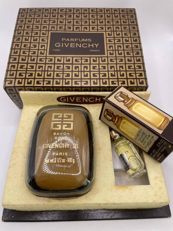 Набор винтажный подарочный Givenchy: туалетная вода 3,75 мл. + мило. С коробкой. Есть наклейки с японским текстом