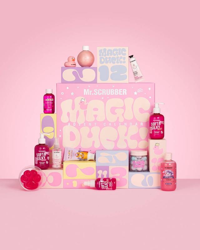 😍Адвент календар Mr.Scrubber Magic Duck 🎄MAGIC DUCK! - це більше, ніж календар. ✨Це 12 днів дитячої радості, сміху й доглядових відкриттів! ♥️Усередині - 12 засобів, що поєднують турботу про себе й гру. Усе продумано так, щоб кожен засіб приносив задоволення. Пухнаста піна, солодкі аромати, яскраві текстури та блискітки створюють для дитини власний святковий світ краси. Адвент календар Magic Duck - це пригода і перший «дорослий» бʼюті-набір для малечі. Це власний простір турботи з відчуттям своєї самостійності, впевненості й унікальності. 🌸Magic Duck Advent Calendar - ідеальний подарунок, щоб відкрити дитині не просто догляд, а чарівний досвід турботи про себе. Усередині: 1. Парфумований зволожувальний крем для рук30 ml 2. Парфумований гель для душу, 250 ml 3. Мінібомбочки для ванни Magic Duck, 180 g 4. Парфумований міст для тіла Magic Duck, 60 ml 5. Дитячий шампунь для волосся Soft & Silky, 200 ml 6. Дитячий бальзам для волосся Soft & Silky, 200 ml 7. Дитяча зубна паста Solident Junior з фтором 1450 ppm / ягідний мікс, 50 ml 8. Піна для ванни з блискітками Magic Duck, 150 ml 9. Дитячий спрей для легкого розчісування волосся Soft & Silky, 100 ml 10. Дитячий ополіскувач для ротової порожнини Solident Junior з фтором 240 ppm, 100 ml 11. Каченя-скрабері 12. Желейне мило Very Berry, 140 g