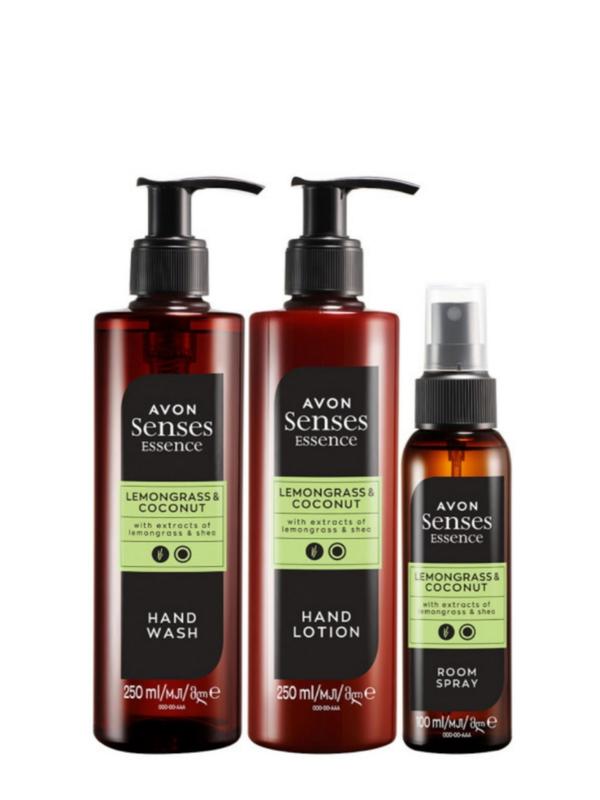 Новая коллекция Avon Senses Essence! Тебе непременно понравится сочетание роскошных ароматов и стильного дизайна новой коллекции для ванны. Ноты ароматной линейки: лемонграсс, кокос Формула продуктов, обогащенная маслом ши, приятно освежает кожу и защищает ее от сухости, окутывая ее райским ароматом лемонграсса и кокоса. В наборе: • Жидкое мыло для рук «Лемонграсс и кокос» ⁇ 250 мл ⁇ • Лосьон для рук «Лемонграсс и кокос» ⁇ 250 мл ⁇ • Спрей для ароматизации воздуха ⁇ 100 мл ⁇