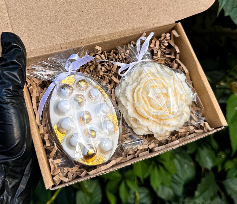 Маленький подарочек, как знак внимания к подруги или коллеги, также отличный вариант, как дополнение к основному подарочнику🎁 В составе набора: - Массажное антицеллюлитное мыло с люфой с ароматом карамели, украшенное золотом - Соевая свеча «Пион» аромат конечно же пиона🌸 Упаковано в крафтовую коробочку🎁