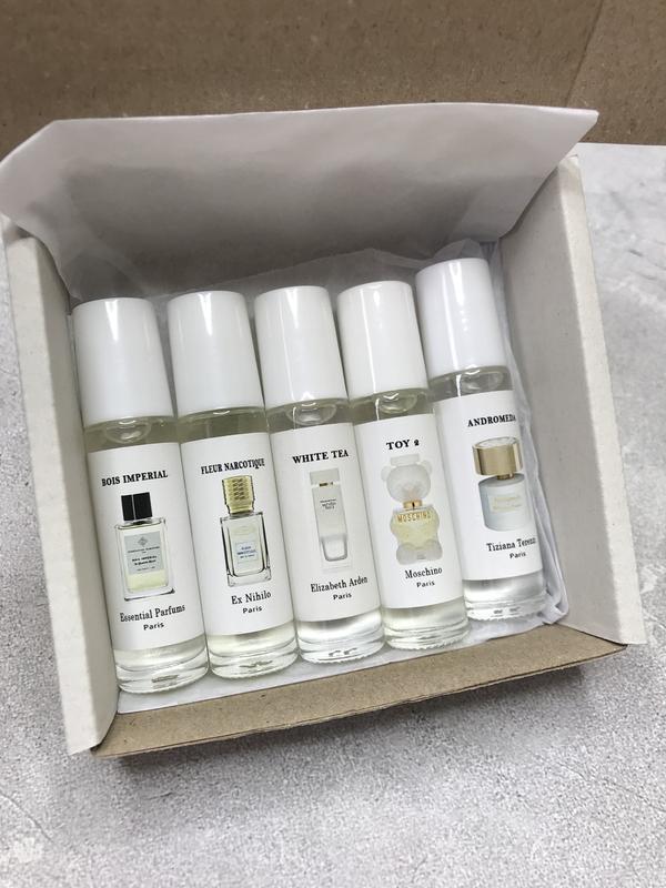 Набір масляних парфумів по 10 мл.В набір входить: Essential Parfums Bois Imperial 10ml. Ex Nihilo Fleur Narcotique 10ml. Elizabeth Arden White Tea 10ml. Moschino Toy 2 Tiziana Terenzi Andromeda 10ml.