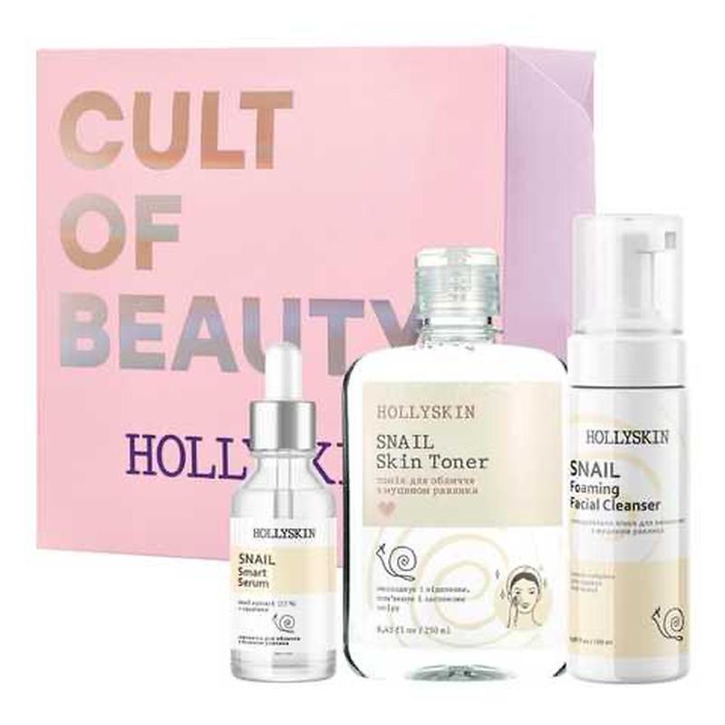 В наборе Hollyskin Snail Smart Basic Care подобраны идеальные уходовые средства. Они разглаживают, освещают и снимают отеки, устраняют дряблость, сухость и возрастную пигментацию, делают лицо гладким и упругим, подходят для всех типов кожи. В набор входят: - сироватка для обличчя Snail Smart Serum, 30 ml; - очищающая пенка для умывания Snail, 150 ml; - тоник для лица Snail, 250 ml.