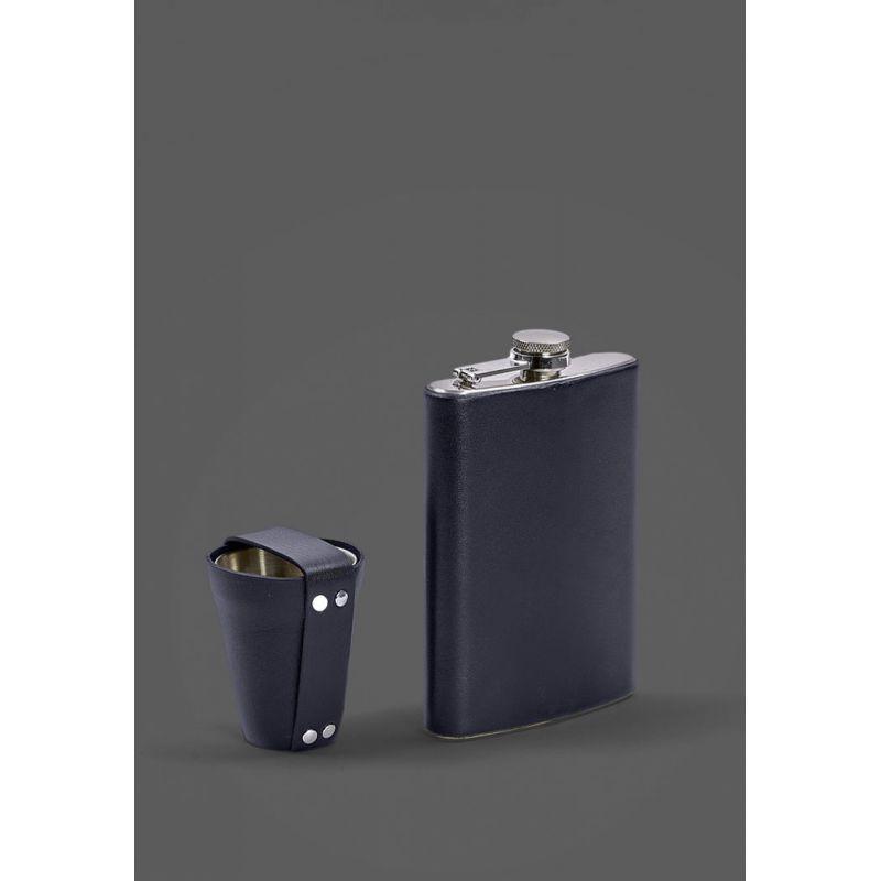 Набор с флягой и рюмками в кожаном чехле темно-синий