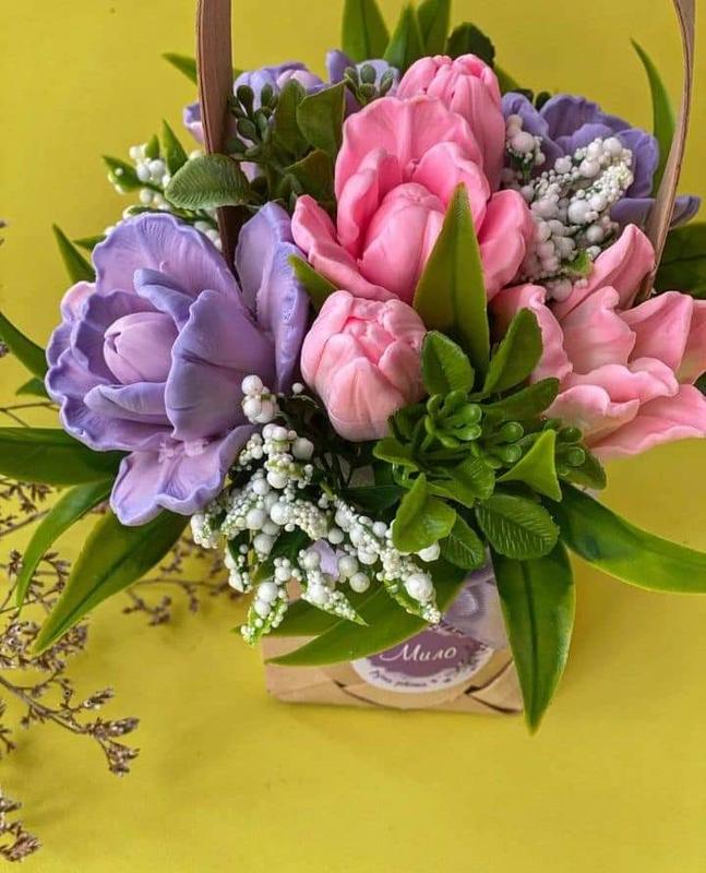 Букет из мыла. мыльный букет. цветы из мыла. мыло ручной работы. тюльпаны. подарок на 8 ма...