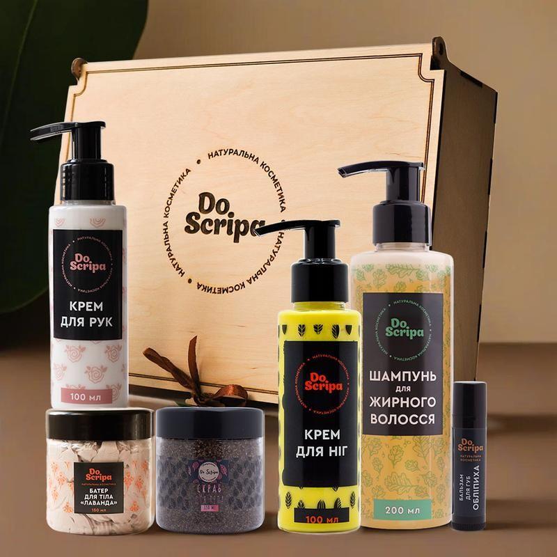 В набор входит: Шампунь для жирных волос Крем для рук крем для ног Бадьзам для губ "Облепиха" Скраб для тела Баттер для тела Деревянный подарочный бокс Дополнительные характеристики: Пол: Женский