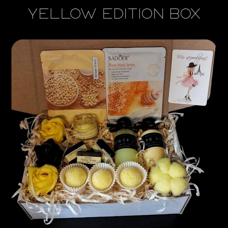 🌼 YELLOW EDITION BOX — тепло, аромат и гармония в одном наборе 🌼 ⠀ Этот бокс создан для тех, кто ценит радость в деталях. ⠀ Солнечный, ароматный, эстетически собранный - YELLOW EDITION BOX станет отличным подарком для женщины, которая любит себя радовать. Идеально подходит для подруги, сестры, коллеги или как «благодаря» себе любимой 💛 ⠀ ✨ В составе: 1. Коробка с наполнителем и атласной лентой - нежное оформление в стиле подарка 2. Гель для душа с ароматом лимона (110 мл) - энергия свежести на каждый день 3. Соль для ванны с ароматом лемонграсса (135 г) - spa-момент дома 4. Скраб-конфеты с ароматом сладкой дыни - 3 шт. - натуральный уход с фруктовым нарядом 5. Свеча в баночке - уют и теплая атмосфера 6. Маска для лица “Honey” - питание и мягкость 7. Маска для лица “Wild soybeans” - естественное увлажнение для кожи 8. Парфюмированное мини-мыло — 3 шт. — с ароматом известных брендов 9. Мыльные розы - 3 шт. - красота и легкий аромат в ванной 10. Хлопок - сухоцвет - для гармонии в оформлении 11. Открытка с теплыми словами — чтобы сказать больше, чем просто «подарок» 12. Праздничная упаковка включена - идеально готов для поручки 💝 💸 Цена: 1000 грн 💬 Теплый, ароматный и стильный - этот набор дарит не только красоту, но и настроение ☀️