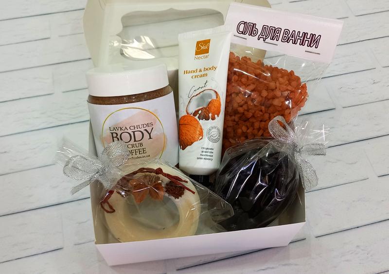 СПА набор это отличный вариант подарка для любой девушки, жены, мамы, подруги. Здесь есть много всего полезного для ухода. В наборе сахарный скраб для тела, ароматная соль для ванны с ухаживающими маслами, мыло с молотым кофе, крем для рук, ароматическое саше и подарочная упаковка. По вопросам оптовых заказов : +38********** (viber) +38********** Lavka chudes Скрабы для тела, Мыло ручной работы и букеты Оригинальный подарок, который понравится каждому Открыть каталог Преимущества В составе скраба ухаживающие масла, они бережно очищают, питают кожу и делают ее нежной и упругой.. Оригинальный подарок, цветы не увядающие, можно использовать как обычное мыло. Мыло можно использовать как декоративный подарок, так и по назначению. Не сушит кожу. Лучшие предложения Букеты Заказать Мыло Заказать Скрабы Заказать Почему мы? 01 Быстрое и качественное обслуживание заказов любой сложности 02 Подарки и скидки для клиентов, а также хорошие скидки для оптовых клиентов 03 Все наши изделия ручной работы изготавливаются с любовью и душой. ВСЕ НАБОРЫ МИЛА, БУКЕТЫ И СКРАБЫ ИЗГОТОВЛЕНЫ ИЗ НАТУРАЛЬНых ОСНОВ, НЕ СОДЕРЖАЩИх В СОСТАВЕ ЛАУРЕТСУЛЬФАТ НАТРИЯ SLES Такое мыло не вызывает раздражения и аллергии. и отлично подходит как для взрослых, так и детей Сделать заказ