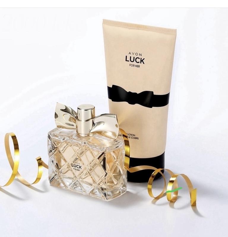 Жіночий парфумний набір Avon luck Набір містить: • Парфумна вода | 50 мл | • Парфумований лосьйон для тіла | 125 мл | Luck – це удача! Luck – це яскравий аромат для тих, хто готовий насолодитися успіхом і відчути смак удачі. Спробуй, і нехай удача тобі усміхнеться! Цей жіночий іскристий аромат з фруктовими нотами здивує тебе. Нехай удача завжди буде твоєю з Avon Luck ТИП Східно-квітковий аромат з фруктовими нотами ПІРАМІДА Верхні ноти: бергамот, червона смородина. Ноти серця: червона троянда, нічний цереус Базові ноти: амбра, оксамитовий сандал, кремова ваніль Країна Виробник: Польща