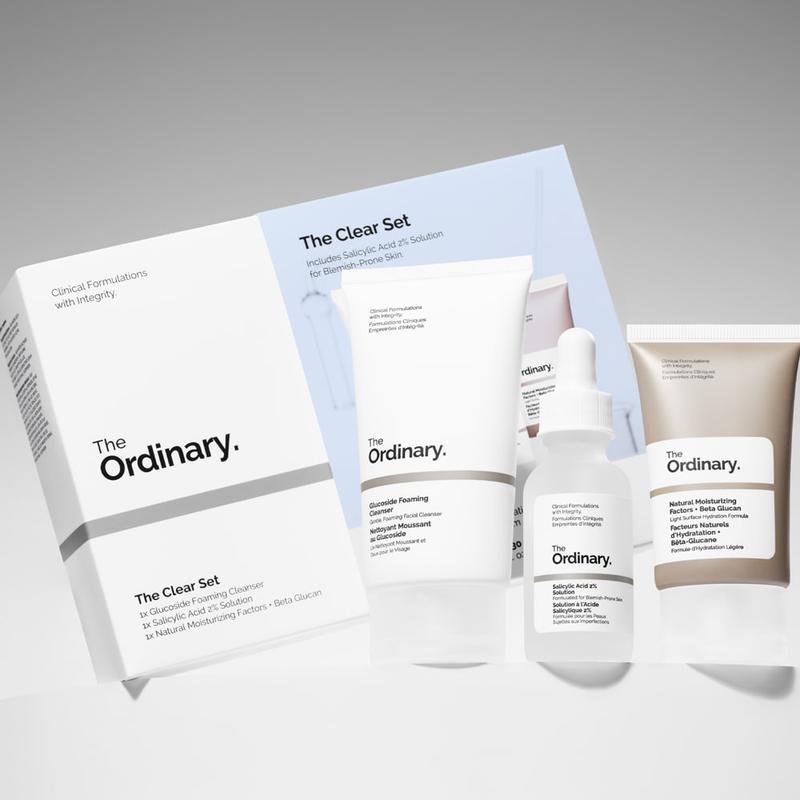 3-ступенчатый набор для очищения кожи с салициловой кислотой от The Ordinary The Ordinary - The Clear Set - набор, предлагающий целенаправленный уход, разработанный для кожи, склонной к появлению прыщей. В набор входят: Glucoside Foaming Cleanser - пенка в форме геля, способствующая эффективному очищению и удалению загрязнений. Она помогает поддерживать уровень увлажненности кожи, улучшая ее тон, текстуру, сияние и упругость при регулярном использовании. Средство создано на основе мягких поверхностно-активных веществ. Объем - 50ml. Salicylic Acid 2% Solution - сыворотка на водной основе с оптимальной концентрацией салициловой кислоты, которая борется с высыпаниями и удаляет мертвые клетки кожи, что могут закупоривать сальные железы. Отшелушивающее действие средства помогает заметно уменьшить комедоны, что способствует осветлению и очищению кожи лица. Объем средства - 30ml. Natural Moisturizing Factors + Beta Glucan - легкий, гелевый увлажняющий крем, разработанный для обеспечения увлажнения на целый день уже после одного нанесения. В состав входят натуральные увлажняющие вещества, бета-глюкан и церамиды, для укрепления защитного барьера. Мочевина смягчает, а гиалуронат натрия повышает уровень увлажнения кожи. Объем - 30ml. Производитель рекомендует набор для таких типов кожи и косметических дефектов: все типы кожи, загрязненная кожа, кожа с акне, кожа с комедонами. Способ использования: Glucoside Foaming Cleanser - нанести средство на ладони, а затем массажными движениями распределить по влажной коже лица. После очищения смыть после очищения. Salicylic Acid 2% Solution - после очищения кожи нанести сыворотку на все лицо или на отдельные участки. Использовать в вечернем уходе. Natural Moisturizing Factors + Beta Glucan - наносить небольшое количество крема на кожу лица во время утреннего и вечернего ухода.