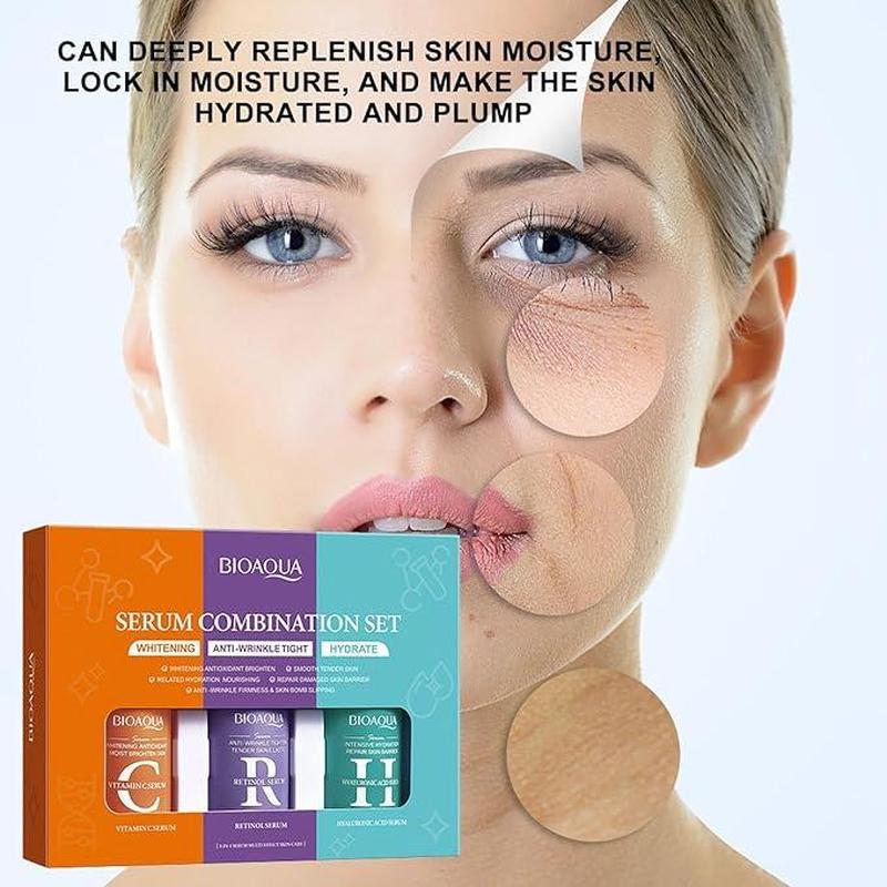 Бьюти бокс из сывороток для лица bioaqua serum combination set 3 шт. по 30мл + 3 тканевые...