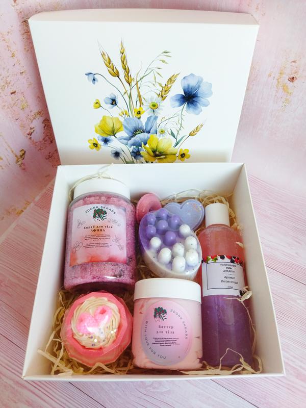 Релакс и невероятные ароматы на коже - все это о нашем СПА наборе, который поразит вас своей органической составляющей, эффективностью и нежным фруктовым запахом! В наборе: • Скраб для тіла "Афина" (лохина) 400мл • Массажное мыло с люфой для тела "Виноград" • Бомбочка для ванни Геометрична Чаша • Натуральный Гель для душа "Лесные ягоды" 100мл • Баттер для тела 100 мл • 2шт мини бомбочки для ванны • Коробка и декор