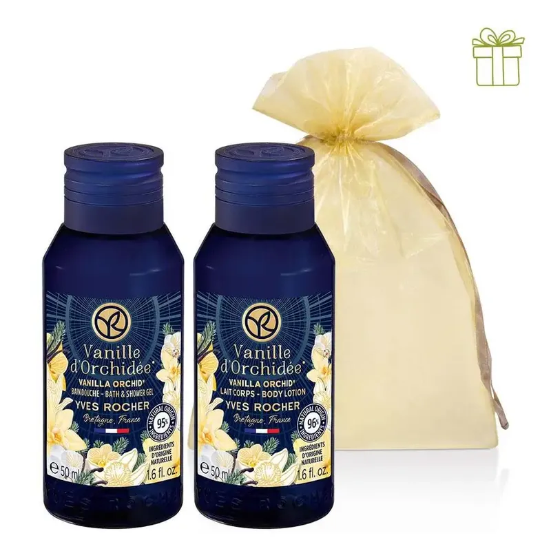 До складу набору входять: Молочко для тіла Ваніль-Орхідея, флакон 50 мл; Гель для ванни та душу Ваніль-Орхідея, флакон 50 мл.