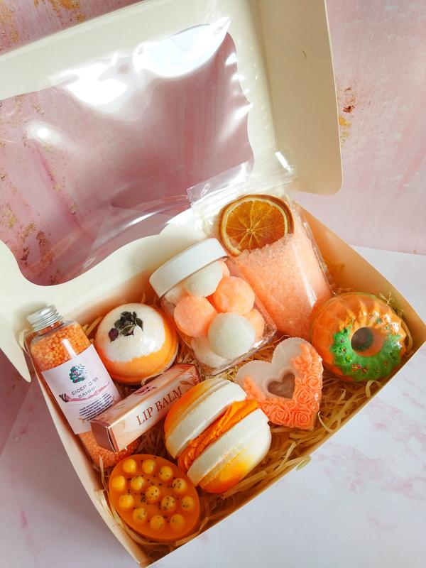 Очень ароматный СПА набор на подарок любимой, маме, подруге, кумме, дочке 🌺 В наборе: • Бісер для ванни 100мл • Бомбочка с твердой пенкой Макарун • Мыло Сердце в цветах • Бальзам для губ • Бомбочка Кекс • Массажное мыло мини классическое • Морская соль 250г • Скраб конфеты для тела (250мл) • Бомбочка сфера с розами • Коробка и декор 🎀