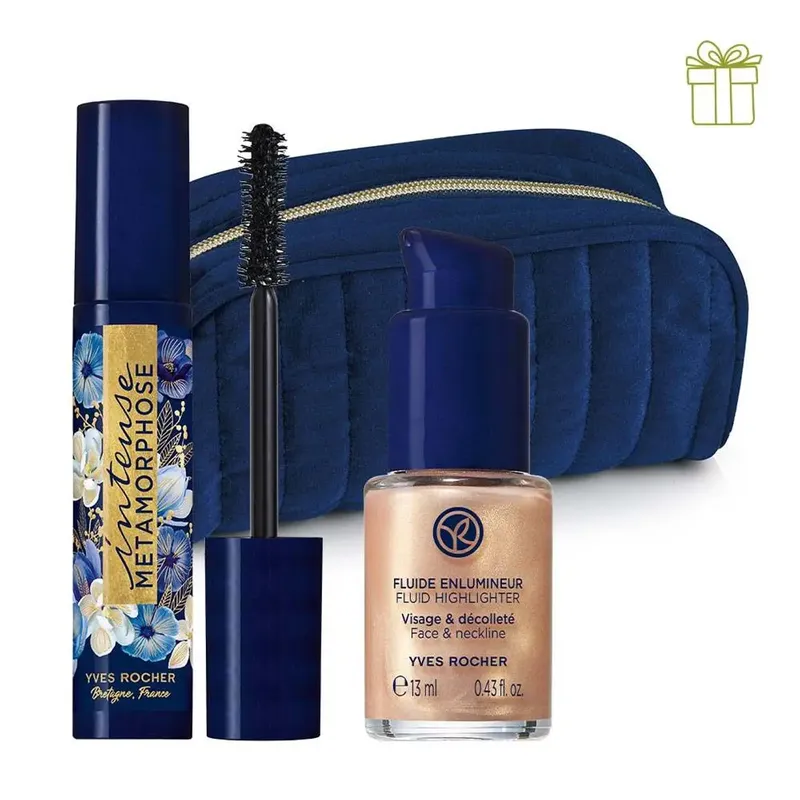 Набор для макияжа: тушь для ресниц и жидкий хайлайтер Идея для подарка Описание В состав набора входят: Туш для вій Метаморфоза Чорна флакон-колектор, флакон 7,8 мл; Жидкий Хайлайтер-флюид, флакон-дозатор 13 мл; Косметичка у подарунок! Тушь для Вой Метаморфоза ультрачерного оттенка в лимитированной флаконе - Зимний Сад-Оранжерея Yves Rocher - полностью меняет ваш взгляд: добавляет ресницам экстремальный объем, впечатляющей длины и изгиба, а также обеспечивает устойчивость макияжа в течение 12 часов! Щеточка специальной формы с мягкими щетинками проста и удобна в использовании, идеально прокрашивает каждую ресничку от внутреннего уголка глаза к внешнему, гарантируя потрясающий результат: суперобъемные, длинные, подкрученные ресницы угольно-черного цвета. Легкая текстура позволяет наносить тушь в несколько слоев без образования комочков. Красота вашего макияжа выдержит любые испытания! Формула туши содержит более 85% ингредиентов натурального происхождения, питательное Рициновое масло и Васильковую воду для ласкового ухода за ресницами. Благодаря такому составу тушь подходит для чувствительных глаз, в том числе при ношении контактных линз. Питает и укрепляет ресницы. Рекомендации по применению: наносить от корней до кончиков легкими зигзагообразными движениями. Жидкая флюидная текстура хайлайтера из новой лимитированной коллекции – Зимний Сад-Оранжерея Yves Rocher – придаст коже нежное сияние. Универсальный оттенок подчеркивает утонченность линий и добавляет акцентов макияжа. Флакон имеет удобный дозатор для комфортного нанесения. Текстура: жидкая. Оттенок: розовое золото, перламутровая, подходит всем оттенкам кожи. Рекомендации по применению: Нанесите хайлайтер на выступающие части лица (вилки, спинку носа и на подбровную кость) с помощью кисти для макияжа или кончиками пальцев. Косметичка . Размеры: 18 х 8 х 11 см. Состав: верх 100% полиэстер, подкладка 95% полиэстер, 5% хлопок. Используйте косметичку для хранения и транспортировки косметических средств. Формат: Набор