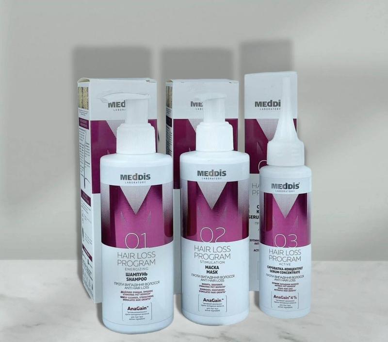 Набір від випадіння волосся Meddis❤️ Склад набору: (1 - Шампунь🥰 2 - Маска🥰 3 - Сироватка🥰 Особливості набору 7): - Підходить для всіх типів волосся; - зміцнює волосяні цибулини та посилює їх харчування; - зволожує та заспокоює шкіру голови; - Надає волоссю додатковий блиск; - зручний дозатори забезпечують економну витрату; - ефективно бореться із проблемою втрати волосся; - не містить барвники та мінеральні олії. Ціна набору 600грн ❤️ Окремо: 1 - Шампунь 190 грн 2 - Маска 250 грн 3 - Сироватка 190 грн *******************************************************************
