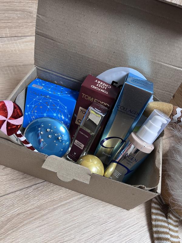 Один удачный вариант подарок для прекрасной части мира 😍 Этот бокс идеальный вариант для повседневного пользования 👍 В даний бокс входить: 1️⃣ Пудра Enough Collagen Premium Hydro Two Way Cake SPF50+/PA++ №13💙 2️<unk> Тональный крем Enough Collagen Moisture Foundation SPF1💙 3️<unk> Мини парфюм Lost cherry pheromone parfum унисекс 40 мл ✅ Подарок В наличии есть разные бьюти боксы🎁 На любой вкус и бюджет😍💰 Наполнение можно менять)