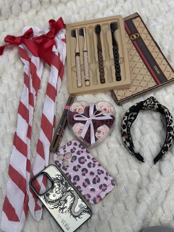 Набор новый Два чехла на айфон 14 pro (питанные) Розы из мыла в ванную (новые) Обруч тигровый новый Чулки новогодние (питанные) Зубные щетки новые мягкие (двух не имеет) Карандаш для бир новый