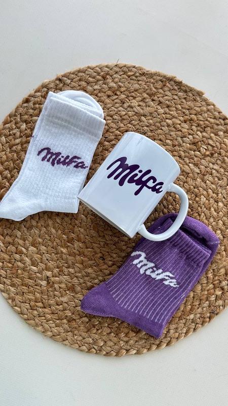 Набор милфа Две пары носков + чашка Цена 670грн 👟 Размер 36-41 Без утепления, высокие Объем чашки 330 мл Керамика Качество на высоте, будете довольны Склад: 90% бавовна, 10% еластан