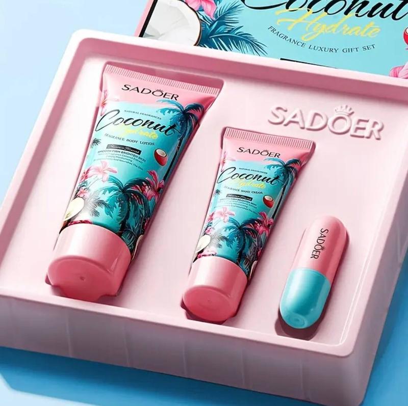Подарочный набор В набор входит: -Бальзам для губ -Лосьон для тела -Крем для рук Аромат: кокос