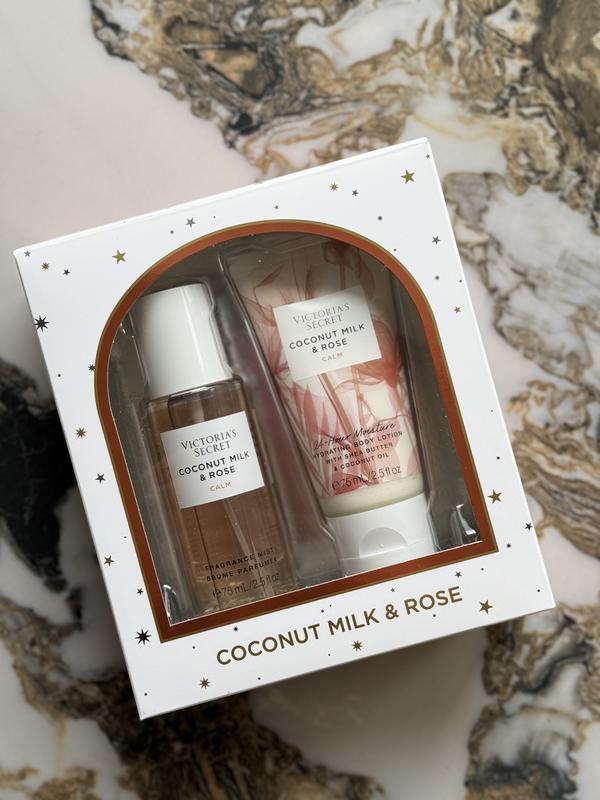 В комплект входят два продукта с нежным ароматом кокосового молока и розы, окутывающие кожу заботой и комфортом: - Спрей для тела - легкий ароматизированный туман для освежения кожи. Объем: 75ml - Лосьон для тела - увлажнение и питание для кожи, которое длится весь день. Объем: 75ml