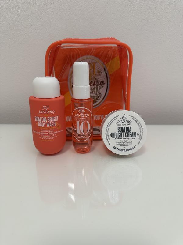 Bom Dia Колекція для догляду за тілом з трьома улюбленими продуктами До набору входить: ~ зволожуючий крем для тіла покращує еластичність шкіри 50 мл; ~ парфумований спрей для тіла і волосся 30 мл; ~ кремовий гель для душу зі зволожуючим ефектом 90 мл. Нотки чорної бурштинової сливи тут переплітаються з темним солодким вершковим лікером creme de cassis, теплими деревними акордами ванілі й свіжих квітів жасмину, доповнених відтінками мускусу.