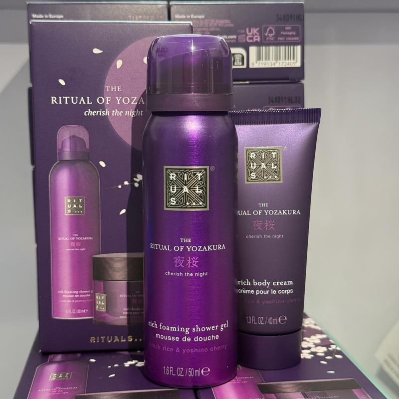 Подарочный набор мини The Rituals of Youzakura Лимитированная серия мини-пенки для душа и крема для тела, на изысканной эссенции вишни Йошино и экстракте черного риса. В набор входит: Гель пенка для душа Rituals The Ritual Of Youzakura Mini Shower Foam 50 ml Крем для тела Rituals The Ritual Of Youzakura Mini Body Cream 40 ml