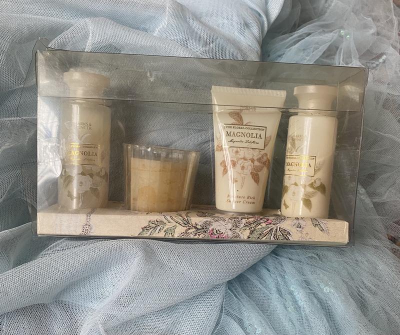 Квіткова колекція M&S. Засоби для ванн і тіла з магноліями та подарунковий набір із ароматичною свічкою