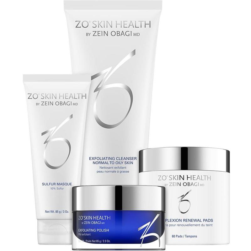 Набор для ухода за кожей с акне бренда Zein займет достойное место в коллекции каждой леди. С таким комплектом вы всегда будете выглядеть роскошно и привлекательно. Активные компоненты регулируют работу сальных желез, отшелушивают ороговевший слой и стимулируют выработку коллагена. Zein Obagi Zo Skin Health Complexion Clearing Program тщательно очистит кожный покров от загрязнений, а также сделает его нежным, упругим, эластичным и сияющим. Очищающий гель для нормальной и жирной кожи склонной к акне - Zein Obagi Zo Skin Health Exfoliating Cleanser Очищающий гель для нормальной и жирной кожи склонной к акне бренда Zein деликатно удаляет загрязнения, насыщает клетки полезными микроэлементами и удерживает необходимое количество влаги в клетках. Эфирные масло жожоба и чайного дерева стимулируют регенерацию, а также нормализуют себорегулирующий процесс. Ингредиенты успокаивают раздражения, выравнивают тон лица и минимизируют негативное влияние свободных радикалов. Предостережение: Гель содержит бета-гидроксикислоты, что может увеличить чувствительность к солнцу. Используйте солнцезащитный крем, отдавайте предпочтение закрытом одежды и ограничьте пребывание на солнце во время и в течение недели после использования геля. Способ применения: Влажными руками нанести небольшое количество геля на увлажненную кожу лица и шеи. Массировать в течение минуты, после чего тщательно смыть водой. Скраб отшелушивающий - Zein Obagi Zo Skin Health Exfolianting Polish Скраб отшелушивающий бренда Zein эффективно удаляет ороговевшие клетки, выравнивает тон лица и стимулирует регенерацию, делая кожу нежной и сияющей. Микрокристаллы магния вытягивают загрязнения из пор и сужают их. Ретиноловый комплекс и витамин С обладают тонизирующим воздействием, отбеливают и заживляют ранки, а витамин Е удерживает необходимое количество влаги в клетках и защищает от негативного влияния агрессивных факторов окружающей среды. Способ применения: после очищения кожи нанесите небольшое количество скраба на влажную кожу и мягко массажируйте, смойте теплой водой. Салфетки для ухода за кожей лица с акне - Zein Obagi Zo Skin Health Complexion Renewal Pads Салфетки для ухода за кожей лица с акне бренда Zein -- незаменимые помощники в косметичке всех обладательниц жирного кожного покрова, склонного к появлению высыпаний. Салфетки устраняют излишние количество себума и удаляют загрязнения. Растительные экстракты обладают успокаивающим воздействием, а 2% салициловая и гликолевая кислоты -- противовоспалительным эффектом. Мочевина увлажняет, предотвращает появление шелушений и ощущения стянутости. Пористая структура аксессуаров позволяет ингредиентам проникать в глубь эпидермиса. Предостережение: Раствор для спонжей содержит альфа-гидроксикислоты, что может увеличить чувствительность к солнцу. Используйте солнцезащитный крем, отдавайте предпочтение закрытом одежды и ограничьте пребывание на солнце во время и в течение недели после использования геля. Способ применения: Протрите лицо спонжем дважды в день (утром и вечером). Маска для лица с серой 10% - Zein Obagi Zo Skin Health Sulfur Masque Маска для лица с серой 10% бренда Zein борется с акне и очищает эпидермис от загрязнений. Глицерин, бетоит, сера и коалин восстанавливают истощенный и тусклый кожный покров, повышают естественный защитный барьер и устраняют дегидратацию. Активные компоненты успокаивают раздраже