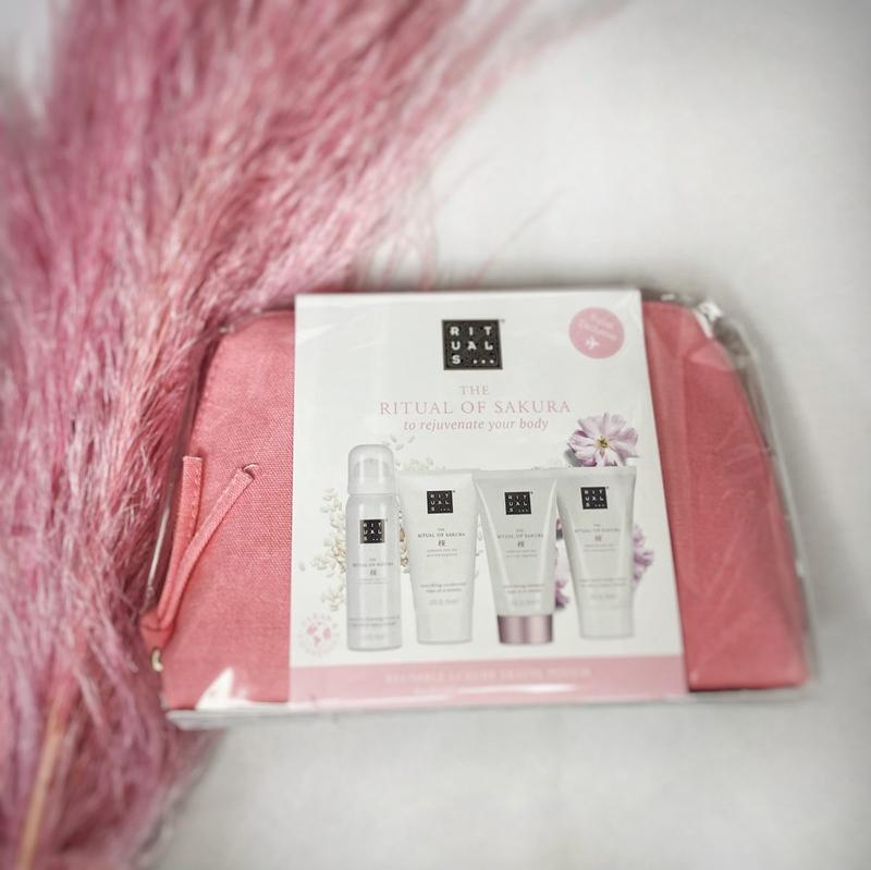 У складі набору: Піна для душу Rituals Ritual Of Sakura Foaming Shower Gel, 50 мл, Крем для тіла Rituals Ritual Of Sakura Body Cream, 70 мл, Кондицiонер для волосся Ritual Of Sakura Conditioner, 70 мл, Косметичка. Переваги набору з косметичкою THE RITUAL OF SAKURA: Чуттєвий і ніжний набір для догляду за тілом і волоссям Насичений чарівними запахами вишні, квітів сакури та рисового молока М'яко очищає, інтенсивно живить, глибоко зволожує шкіру та волосся Усі засоби на 90-95% складаються з інгредієнтів натурального походження Стане ідеальним подарунком для близької людини Спосiб застосування: Нанесіть гель на шкіру, помасажуйте до утворення піни, змийте водою. Нанесіть шампунь на волосся, спіньте, добре промийте водою. Нанесіть кондиціонер на вологе волосся, залиште на 5 хвилин, змийте теплою водою. Нанесіть крем на шкіру та залиште до повного вбирання.