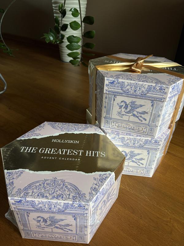 Адвент календар The Greatest Hits – це казкова пригода з чарівними пророкуваннями та подарунками. Чарівники приготували тобі 12 хітів HOLLYSKIN та поклали їх на карусель сюрпризів. Що саме там є, ти дізнаєшся, коли відкриєш кожну коробочку. Подаруй свято собі та тим, кого любиш. До Адвенту календаря увійшли: Парфумований зволожуючий крем для рук So soft. 75 ml Крем для повсякденного очищення шкіри обличчя So Clean. з екстрактом камелії та рисом 100 g Охолоджуюча ліфтинг маска для боротьби з набряками Artichoke. Skin Perfecting Mask 100 g Тонер для підтримки мікробіому шкіри з екстрактом центелі азіатської та рисом Rice Touch 100 ml Кислотний шампунь для глибокого зволоження шкіри голови та волосся Acid Solution. 100 ml Парфумований дезодорант з гіалуроновою кислотою та пребіотиками Prebiotic Deo. Cherry Blossom 50 g Відновлювальний крем для обличчя з екстрактом центелі азіатської та рисом Rice Touch 50 g Поживний крем-батер для тіла So rich. 100 ml Шиммер-спрей для тіла Luster Gold 100 ml Спрей термозахист для волосся 17 in 1 Acid Solution. 100 ml Глибоко очищаюча гідрофільна олія з екстрактом гінкго білоба Ginkgo biloba 100 ml Ензимна пілінг-пудра для обличчя Angel Skin 25 g Додатковий особливий подарунок – гра у форматі карток з питаннями, яку можна використовувати для роздумів наодинці або обговорень із близькими.