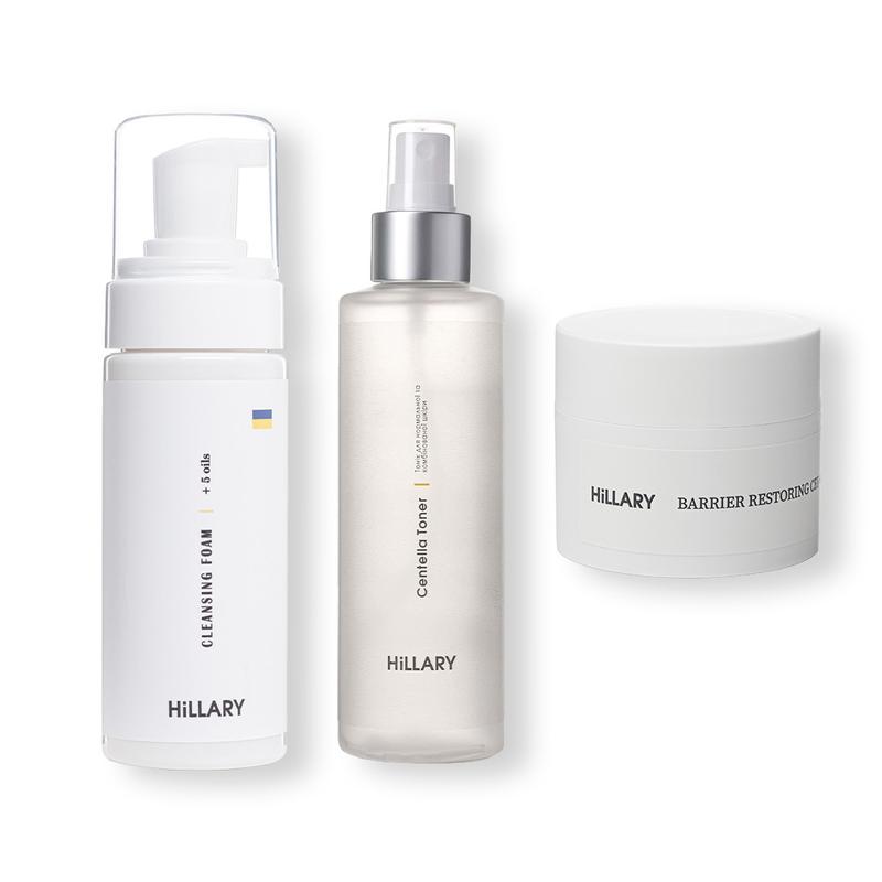 Комплексний набір для нормальної шкіри стане незамінним у вашому догляді, забезпечуючи м'яке очищення, захист і зволоження. Крем з керамідами та постбіотиками, очищуюча пінка з п'ятьма оліями та тонік із центелою підтримують природний баланс шкіри, зберігаючи її здоровою та сяючою. Відновлювальний крем збагачений лактобактеріями, які підтримують білок філлагрін, зміцнюючи захисний бар'єр шкіри. Унікальна комбінація рослинних керамідів та сквалану з оливкової олії глибоко зволожує, запобігає передчасному старінню і допомагає шкірі протистояти впливу щоденних стресових факторів. Крем підтримує мікрофлору та запобігає подразненням, роблячи його ідеальним вибором після активних інгредієнтів, таких як кислоти або ретинол. Очищуюча пінка дбайливо видаляє забруднення та макіяж, зберігаючи природний баланс шкіри завдяки суміші з п'яти олій. Мигдальна олія зволожує та живить шкіру, олія виноградних кісточок загоює мікропошкодження та бореться із запаленнями, а олія камелії стимулює колаген, забезпечуючи шкірі пружність і еластичність. Оливкова олія дарує м'якість та відновлення, а олія макадамії захищає від несприятливого впливу зовнішнього середовища. Тонік із центелою завершує очищення, дарує свіжість і зволоження, одночасно освітлюючи пігментні плями та покращуючи колір обличчя. Завдяки центелі азійській, тонік сприяє виробленню колагену, а гіалуронова кислота утворює захисну плівку, що вбирає вологу з навколишнього середовища, зберігаючи її всередині шкіри. Sodium PCA підтримує водно-ліпідний баланс та підвищує еластичність, надаючи шкірі здорового вигляду. До набору входять: - Відновлювальний крем з керамідами та постбіотиками Hillary Barrier Restoring Ceramide Cream, 50 мл - Очищуюча пінка для нормальної шкіри Hillary Cleansing Foam + 5 oils, 150 мл - Тонік для нормальної та комбінованої шкіри Hillary Centella Toner, 200 мл Спосіб застосування: 1. ПІНКА Нанесіть невелику кількість очищуючої пінки на вологу шкіру обличчя. Спіньте пінку і ретельно змийте теплою водою. 2. ТОНІК Нанесіть тонік на ватний диск або безпосередньо на шкіру. Легенько протирайте обличчя тоніком. 3. КРЕМ Розподіліть відновлювальний крем легкими масажними рухами на чисту шкіру обличчя та шиї. Використовуйте вранці та ввечері для найкращих результатів.