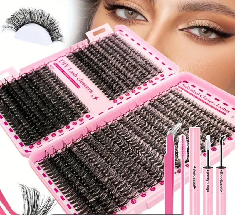 Набір для нарощування вій 700/160 шт. з клейкою основою та пінцетом, товсті кластери вій D-курл (30D 40D 50D змішані, 9–16 мм), індивідуальні вії Wispy Curl – елегантний подарунковий набір