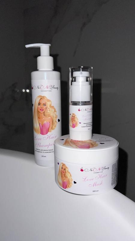 В набор входит: 🩷Маска Love для реконструкции и разглаживания волос, 200 мл. 🩷Шампунь Love для реконструкции и разглаживания волос, 250 мл. 🩷Масло для волос Love, 20 мл.