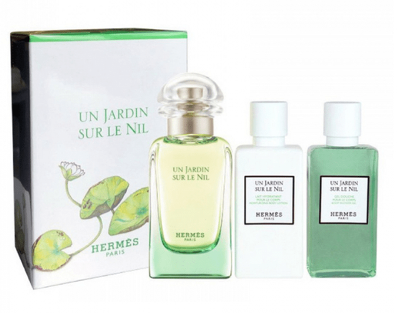 Премьера аромата: 2005 Бренд: Hermes Серия: un jardin sur le nil Группа товара: набор Страна ТМ: Франция Парфумер: jean-claude ellena Сделано в: Франция Пол: унисекс Классификация: элитная Тип аромата: цветочные, фруктовые Начальная нота: Грейпфрут, Зеленый манго, Морковь, Помидор Нота сердца: Апельсин, Гиацинт, Лотос, Камыш, Пион Конечная нота: Ирис, Корица, Лабданум, Ладан, Мускус Состав набора: гель для душа, лосьон для тела, туалетная вода