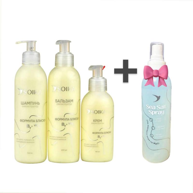 Набор 3 в 1 для реконструкции волос формула блеска - в подарок солевой спрей