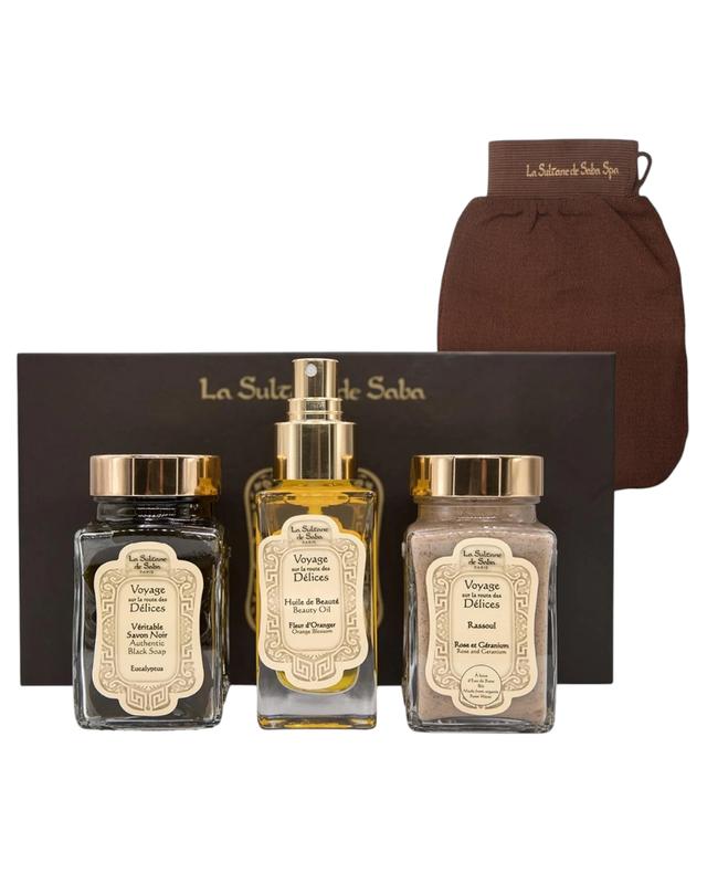Подарочный набор La Sultane de Saba Hammam Ritual Gift Set - это настоящий праздник для кожи и волос, который перенесет вас в атмосферу роскоши и нежности восточного хаммама. Набор состоит из тщательно подобранных косметических средств, которые обеспечат эффективный уход и создадут незабываемое чувство комфорта. Комплектация набора: - Масло для тела и волос La Sultane de Saba Beauty Oil Orange Blossom (50 мл) - многофункциональное средство, которое питает и восстанавливает кожу, помогая избежать ее сухости и раннего старения. Благодаря аргановому маслу и цветочному экстракту апельсиновых цветов, оно стимулирует обновление клеток и дарит естественный блеск. - Рассул глина для тела и волос La Sultane de Saba Rassoul (100 мл) - этот продукт на основе вулканической глины из Марокко помогает глубоко очищать кожу и волосы, нормализует работу сальных желез, уменьшает жирный блеск и повышает эластичность кожи. Благодаря натуральным ингредиентам, таким как мед, роза и герань, глина тонизирует, омолаживает и дарит здоровое сияние. - Эвкалиптовое мыло La Sultane de Saba Authentic Eucalyptus Black Soap (100 мл) - это черное мыло, изготовленное из марокканских оливок и эвкалипта, имеет приятный освежающий аромат. Оно мягко очищает кожу, сохраняя ее естественный барьер, не пересушивает и не вызывает раздражения. Оливковое масло глубоко питает, а эвкалипт способствует укреплению защитных свойств дермы.