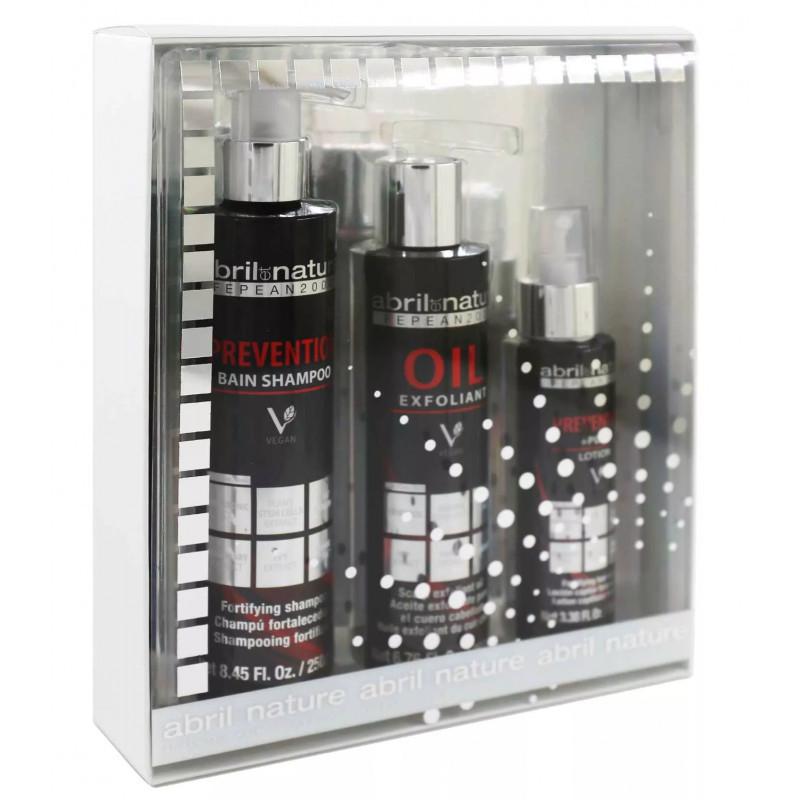 - Склад набору: Шампунь проти випадіння волосся - Abril et Nature Fepean 2000 Anti-Hair Loss Shampoo, 250 мл + Очищувальна олія-ексфоліант для шкіри голови - Abril et Nature Fepean 2000 Oil Exfoliant, 200 мл + Лосьйон від випадіння волосся - Abril et Nature Vitamin Lotion, 100 мл Бажаєте мати сильне і здорове волосся без втрати часу на пошук ідеальних продуктів? Використовуйте набір Fepean 2000 Anti-Hair Loss бренду Abril et Nature. Він включає 3 засоби на основі натуральних компонентів, які забезпечать вам високоякісний догляд за локонами і шкірою голови. Вони працюють на зміцнення волосяного полотна, попереджаючи ламкість і випадіння. Шампунь проти випадіння волосся - Abril et Nature Fepean 2000 Anti-Hair Loss Shampoo - ретельно очищає від себуму, пилу та залишків стайлінгових засобів; - м'яко впливає на шкірний покрив голови; - не порушує фізіологічного рН; - покращує циркуляцію крові та прилив корисних речовин до волосся; - завдяки рослинним оліям та екстрактам зволожує і живить волосяну структуру; - знижує ризик втрати волосся. Очищувальна олія-ексфоліант для шкіри голови - Abril et Nature Fepean 2000 Oil Exfoliant - містить ефірні олії, які насичують епідерміс голови корисними мікроелементами; - активізує регенерацію фолікул волосся; - посилює його ріст; - пробуджує фолікули, що сплять; - насичує шкіру киснем, покращує її дихання; - відновлює комфорт і свіжість. Лосьйон від випадіння волосся -- Abril et Nature Vitamin Lotion - розроблений на основі екстракту стовбурових клітин яблуні; - зміцнює волосся від коренів до кінчиків; - надає йому гладкості і шовковистості; - стимулює мікроциркуляцію; - нормалізує життєдіяльність сальних залоз; - здійснює профілактику випадіння волосся; - перешкоджає появі лупи; - посилює густоту та блиск локонів. - Шампунь проти випадання волосся - Abril et Nature Fepean 2000 Anti-Hair Loss Shampoo Нанесіть на волосся, як завжди, помасажуйте, а потім добре промийте теплою водою. Очищувальна олія-ексфоліант для шкіри голови - Abril et Nature Fepean 2000 Oil Exfoliant Нанесіть безпосередньо на шкіру голови. Залишіть на 5 хвилин, а потім добре промийте теплою водою. Перед вживанням збовтати. Лосьйон від випадіння волосся - Abril et Nature Vitamin Lotion Наносити безпосередньо на суху шкіру голови один раз на день, доки не побачите, що проблема зменшилася. Згодом застосовуйте раз на тиждень для профілактики. Не змивати