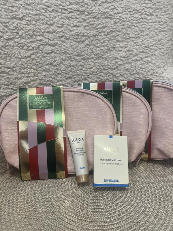 Виготовлено в Ізраїлі , оригінал . Термін придатності до 2028 року. В набір входить : -зволожуюче мило на основі глини Мертвого моря Ahava 100г. -Очищувальна маска для обличчя Ahava 20ml. -фірмова вмістка косметичка . Опис маски : Очищувальна маска для обличчя від бренда Ahava забезпечує комплексний догляд за шкірою. Вона відмінно очищує, заспокоює та пом'якшує епідерміс, а також активізує процеси його регенерації та вирівнює тон. Такий косметичний продукт ретельно усуває забруднення, надлишок себуму та дарує відчуття приємної свіжості, чистоти після використання. Маска вирізняється комфортною консистенцією, яка легко розподіляється та змивається. Особливості Ahava Time To Clear Purifying Mud Mask: - не містить спирту і парабенів; - збагачена фірмовою сумішшю мінералів Мертвого моря — Osmoter™; - забезпечує ефективну очищувальну дію; - чудово освіжає шкірний покрив; - робить епідерміс м'яким і гладким на дотик; - протидіє тьмяності шкіри; - сприяє зменшенню чорних цяток та звуженню пор; - освітлює тон шкіри та створює матувальний ефект. Опис мила : Мило на основі бруду Мертвого моря Ahava Dermud Purifying Mud Soap делікатно очищає шкіру обличчя та тіла від забруднень та себуму. Не викликає сухості та стягнутості, дарує відчуття комфорту та чистоти. Бруд Мертвого моря вбирає надлишки себуму, перешкоджає появі висипів та подразнень. Зберігає шкіру обличчя та тіла здоровою та доглянутою. Як використовувати Спініть мило в долонях і нанесіть на вологу шкіру, помасажуйте та змийте теплою водою. Далі нанесіть крем для тіла. Використовуйте щодня або за потребою.