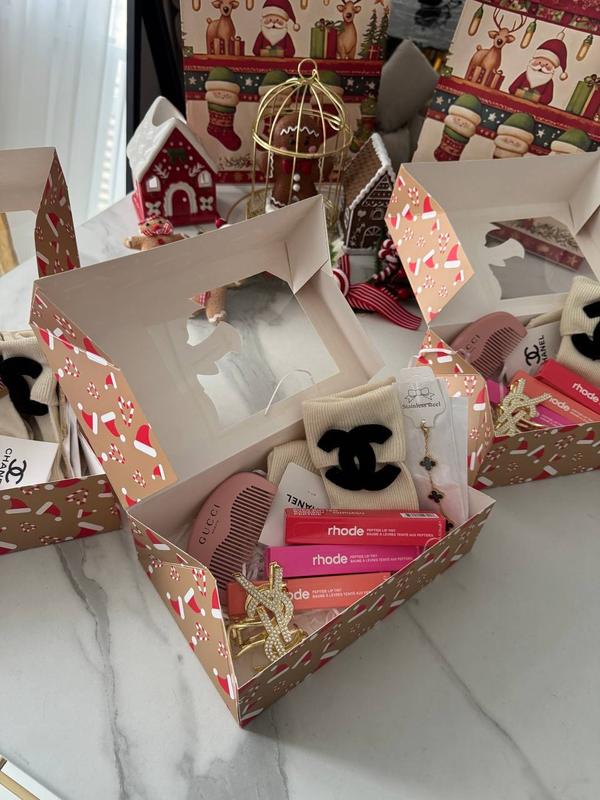 Наповнення: три блиски rhode, носочки, крабик з лого ysl, гребінець gucci