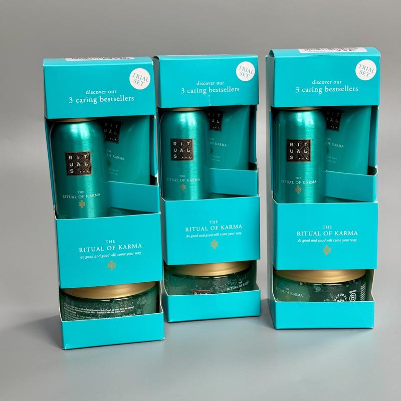 Набір подарунковий The Ritual Of Karma Rituals Три базові засоби з ароматом білого лотоса та органічного білого чаю У складі набору: 🪷 Гель-піна The Ritual of Karma Rituals 50 мл 🪷 Скраб для тіла The Ritual of Karma Rituals 125 мл 🪷 Крем для тіла The Ritual of Karma Rituals 70 мл