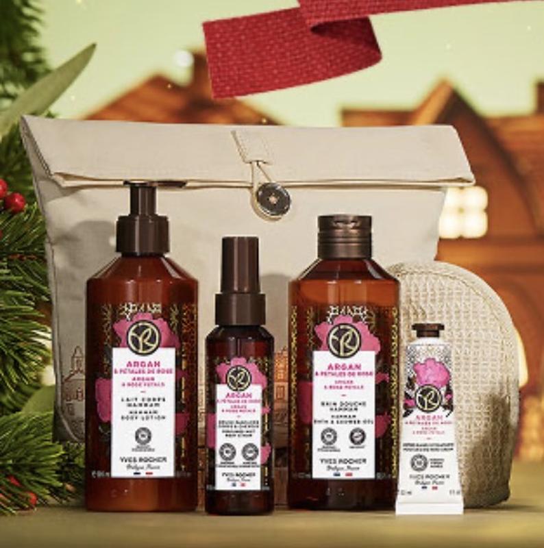 В состав набора входят: Гель для ванни та душу, флакон 400 мл; Молочко для тела, флакон 390 мл; Крем для рук, тюбик 30 мл; Спрей для тела и волос 150 мл Косметичка Мочалка Формат: Набор Молочко, обогащенное аргановым маслом и БИО-экстрактом мароканской розы, эффективно увлажняет сухую кожу тела, улучшает плотность и упругость кожи, расслабляет и в течение длительного времени дарит тонкий цветочный аромат. Гель для ванны и душа, обогащенный аргановым маслом и БИО-экстрактом мароканской розы, дарящие эффект расслабляющего ухода традиционного хамама. Гель нежно очищает и питает кожу тела. Рекомендации по применению: нанесите небольшое количество средства на губку для тела, вспеньте, затем с помощью губки для тела нанесите пену на кожу, тщательно смойте водой. Текстура: прозорий гель. Аромат: нежный, медовый, цветочный