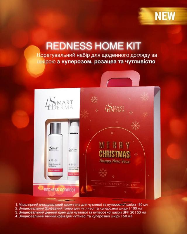 ⭐️NEW🔥Redness home kit🎁акция 1+1=3🎁 Уникальная возможность позаботиться о своем уходе и сделать подарок близким по МЕГА выгодной цене) Корректирующий набор для ежедневного ухода за кожей с куперозом, розацеа и повышенной чувствительностью. Набор REDNESS идеально подходит для интенсивного успокоения кожи. Активные ингредиенты линии уменьшают чувствительность кожи, облегчают раздражение и воспаление. Состав набора: - Мицеллярный очищающий крем-гель для чувствительной и куперозной кожи, 100 мл — Укрепляющий 2-фазный тонер для чувствительной и куперозной кожи, 100 мл — Укрепляющий дневной крем для чувствительной и куперозной кожи SPF 20, 50 мл — Укрепляющий ночной крем для чувствительной и куперозной кожи, 50 мл *Акция действует с 15 по 26 декабря Просто закажите 2 набора - 3 получите в подарок