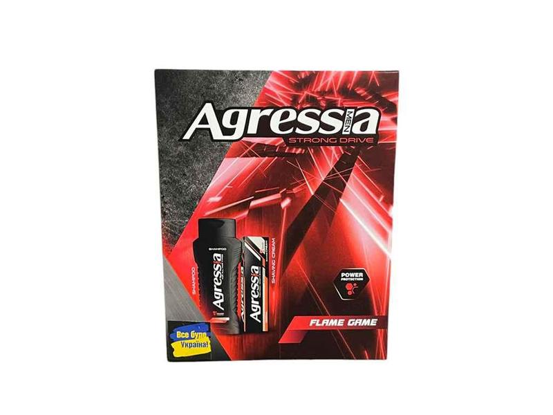 Ексклюзивні подарункові набори men Agressia® спеціально створені для стильних і успішних чоловіків. Це високоякісні продукти нового покоління, які гарантують сучасному чоловікові ефективний і повноцінний догляд за тілом. Крем для гоління NORMAL. Густа піна помякшує щетину. Запобігає сухість і стягнутість шкіри після гоління. Містить екстракт липи та провітамін В5. Крем для гоління men Agressia® забезпечує виключно гладкий і бездоганний результат гоління, завдяки насиченій піні, мякою текстурою і тонкому аромату. Крем містить зволожуючі компоненти, які забезпечують оптимальний догляд і дарують шкірі миттєве відчуття свіжості, шкіра виглядає молодою і здоровою, гладкою і пружною. Шампунь для всіх типів волосся інтенсивно живить і зміцнює коріння волосся для всіх типів волосся містить вітамін Е. Шампунь men Agressia® захищає шкіру голови і волосся від дегідратації, сприяє відновленню їх природного гідробалансу, роблячи волосся здоровими, еластичними і блискучими.