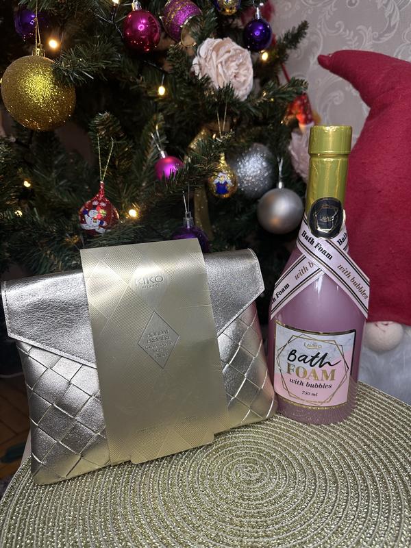 Чудовий подарунок для кожної жінки 1варіант: -Косметичка Кіко + двосторонній блиск помада + лак для нігтів + піна для ванної 2варіант: -Набір з трьох базових помади Кіко + піна для ванної