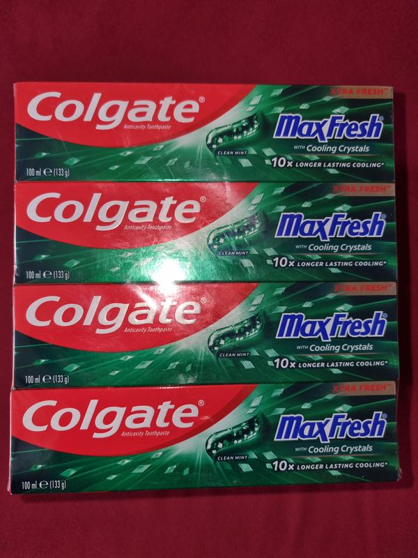 Отбеливающая зубная паста 100 мл colgate Инновационная зубная паста «Colgate Max Fresh Cooling Crystals» от популярного бренда Colgate, выпускающего качественные средства по уходу за полостью рта, подарит вам сияющую улыбку и отлично освежит дыхание. Такое средство прекрасно справится с темным налетом на зубах без помощи стоматолога. Формула средства содержит в составе тысячи небольших белых пластинок, которые оказывают эффективные очищающие, отбеливающие и освежающие действия. Выраженный мятный вкус дарит приятные эмоции во время чистки зубов и уверенность в дыхании в течение всего дня. Смотрите другие Мои лоты!!! Удачных покупок))