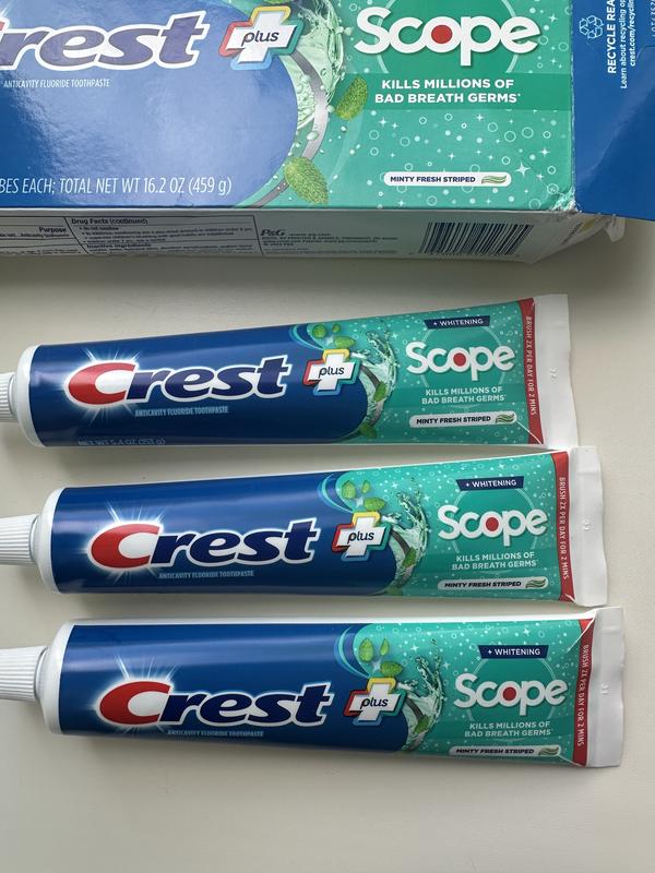 Оригінал! Замовлення і США. Без картонної упаковки ! Продаю по 1 шт, так як при доставці в Україну помʼяли упаковку картону. Тривала свіжість. Зубна паста Crest + Scope Complete Whitening має переваги зубної пасти з додаванням свіжості Scope. Вона допомагає боротися з мікробами неприємного запаху з рота, залишаючи дихання свіжим до 7 разів довше. Регулярне чищення зубів допомагає боротися з карієсами та утворенням зубного каменю. Крім того, воно м'яко видаляє поверхневі плями, щоб допомогти вибілити зуби. Відчуйте, як це працює. Всі переваги зубної пасти Crest з додаванням свіжості Scope Дихання свіже до 7 разів довше, ніж звичайна зубна паста Видаляє поверхневі плями для білих зубів Додаткове відбілювання та тривала свіжість Допомагає боротися з карієсом та утворенням зубного каменю
