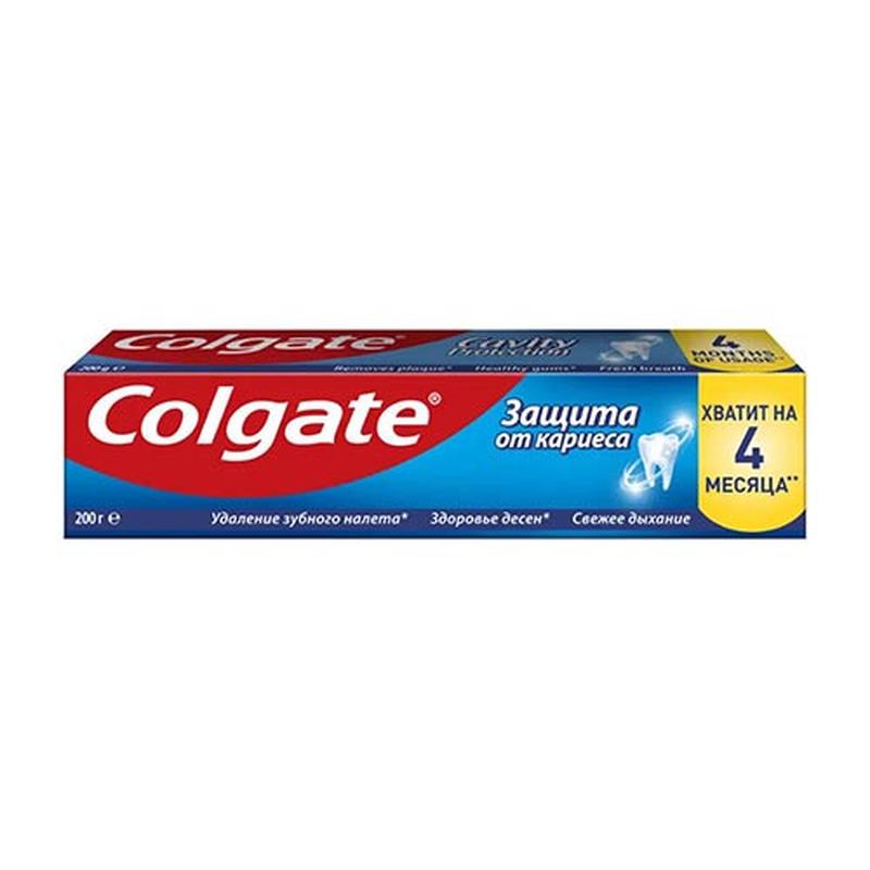 Зубні пасти Colgate Пропонуємо вам ознайомитися зі зубною пастою Colgate "Захист від карієсу" об'ємом 200 мл. Зубна паста Colgate "Захист від карієсу" - це ефективний спосіб догляду за здоров'ям вашої посмішки. Завдяки передовій формулі, ця паста надає комплексний захист від карієсу та сприяє підтримці здорового стану зубів. У складі зубної пасти містяться активні компоненти, які допомагають укріпити зубну емаль, запобігають розвитку карієсу та забезпечують тривалий свіжий подих. Регулярне використання зубної пасти сприяє зменшенню небезпеки утворення зубного нальоту, забезпечуючи вам відчуття чистоти та комфорту після кожного чищення. Оберіть зубну пасту Colgate "Захист від карієсу" об'ємом 200 мл для надійного догляду за вашою посмішкою. Замовте її прямо зараз та забезпечте собі найкращий захист від карієсу разом з Colgate!
