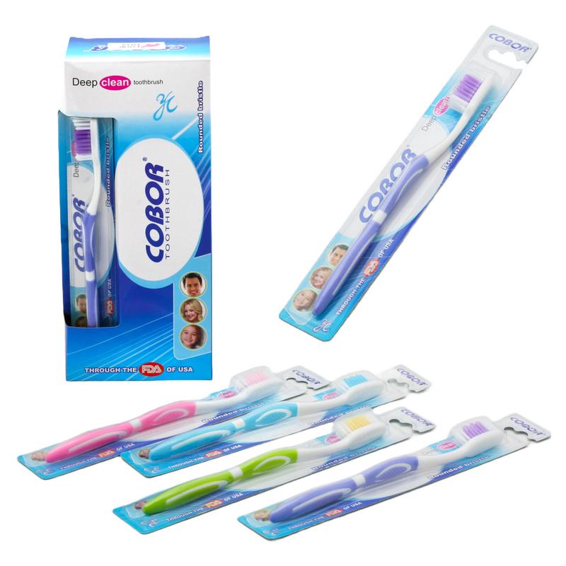 Зубна щітка Cobor, середньої жорсткості. Асортимент кольорів. Індивідуальне пакування. Упаковка - коробка, 12 шт. Ціна за одну щітку.