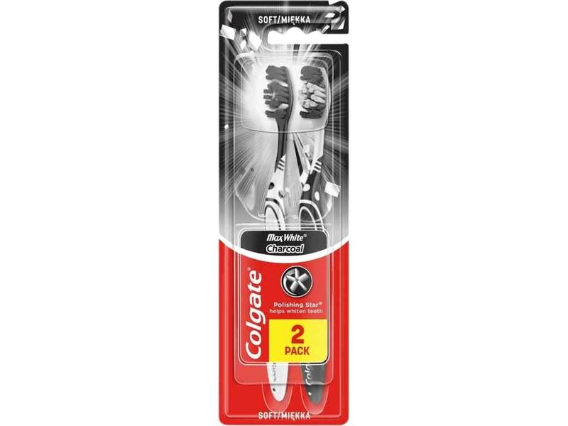 Мягкая зубная щетка Colgate Max White Charcoal Soft Toothbrush с уникальной полировальной звездочкой и специально разработанным узором щетины помогает отбелить зубы, удаляя пятна и открывая природное бельё ваших зубов. Помогает удалить пятна и раскрыть природное белье ваших зубов. Имеет уникальную полировальную звезду и специально разработан рисунок щетины. Угольная щетина.