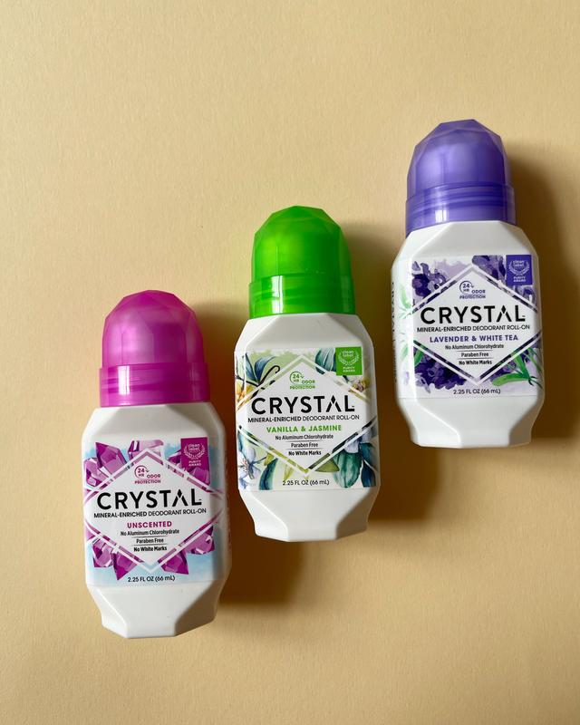 Натуральный шариковый дезодорант Crystal. 👻 действует 24 часа 👻 гипоаллергенный 👻 не содержит парабенов 👻 содержит эфирное масло 👻 не липнет 👻 не оставляет пятен и белых следов Ароматы: 😻 без запаху; 😻 ваниль/жасмин; 😻 лаванда и белый чай; 😻 гранат